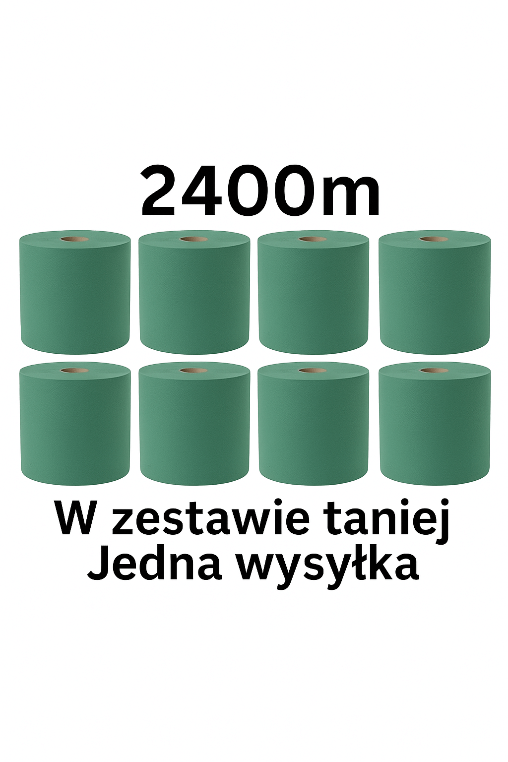 Niższa cena i jedna przesyłka – Zestaw 8 rolek – Ręcznik papierowy zielony, 2-warstwowy (każda rolka 300 metrów, perforowany)