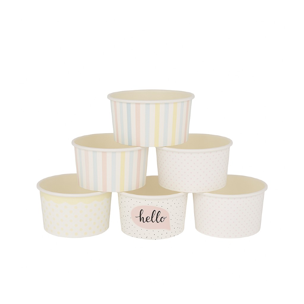 Miska papierowa do lodów PASTELE pięć różnych wzorów w opakowaniu 245 ml