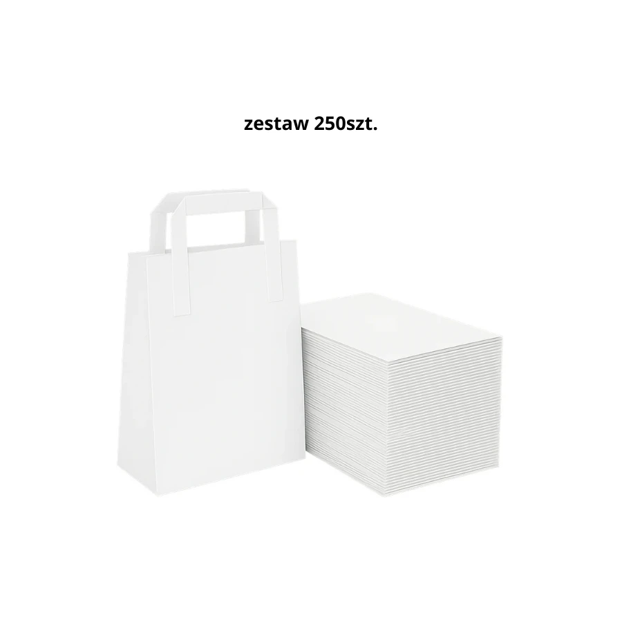 Zestaw 250 szt. – Torba papierowa biała z płaskim uchwytem 18 × 9 × 23 cm