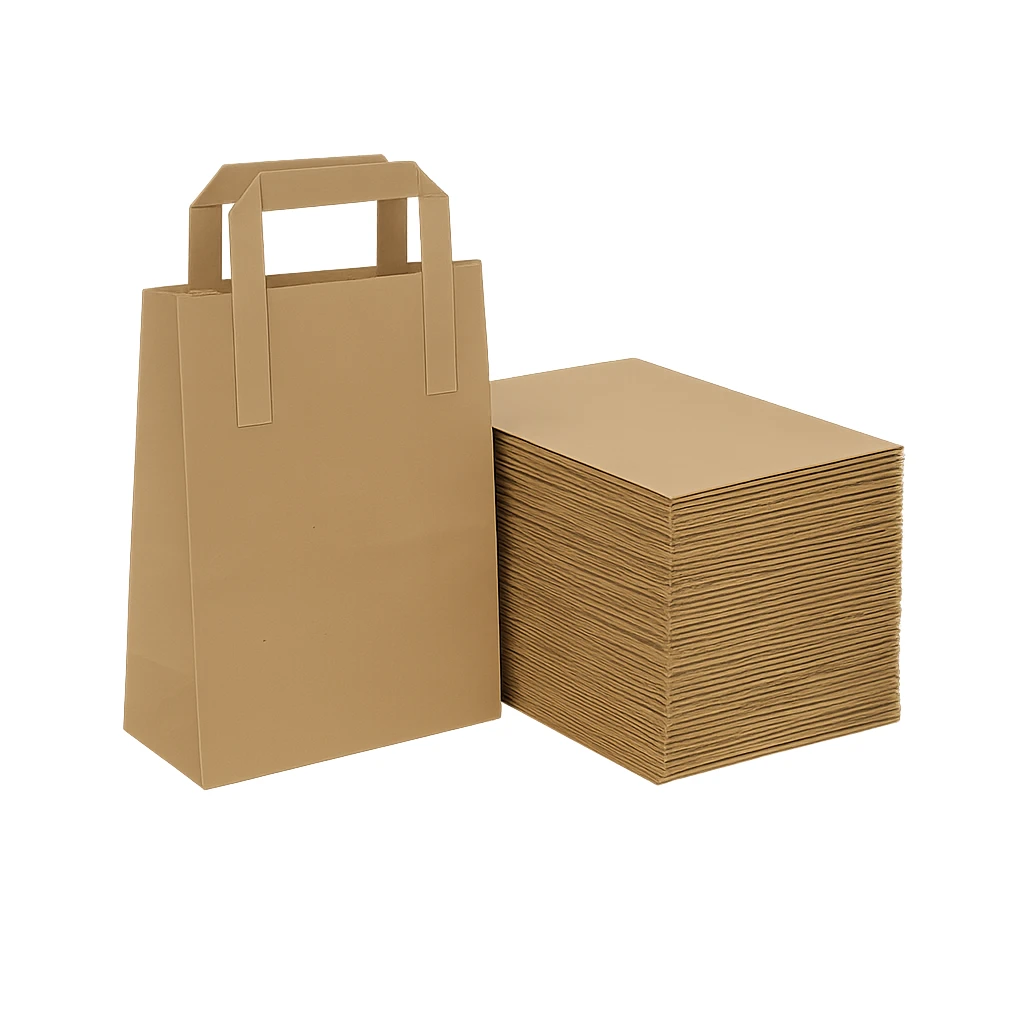 Zestaw 250 sztuk toreb papierowych kraft w kolorze brązowym to praktyczne rozwiązanie dla sklepów, piekarni, cukierni, butików i punktów gastronomicznych. Torby wykonane są z wytrzymałego papieru kraft i wyposażone w solidne płaskie uchwyty, które zapewniają wygodę i bezpieczeństwo użytkowania.