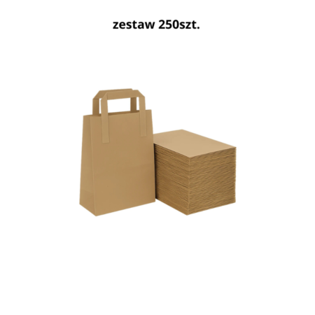 Zestaw 250 szt. – Torba papierowa kraft brązowa z płaskim uchwytem 18 × 9 × 23 cm
