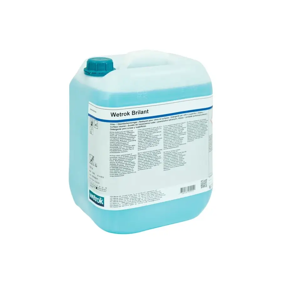 Profesjonalny, gotowy do użycia środek czyszczący przeznaczony do powierzchni szklanych, lustrzanych, akrylowych i innych odpornych materiałów. WETROK BRILANT skutecznie usuwa tłuste plamy, odciski palców, kurz i wilgoć — pozostawia powierzchnie czyste, bez smug i błyszczące.