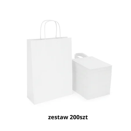 Zestaw 750 szt. – Torba papierowa biała z płaskim uchwytem 18 × 9 × 23 cm
