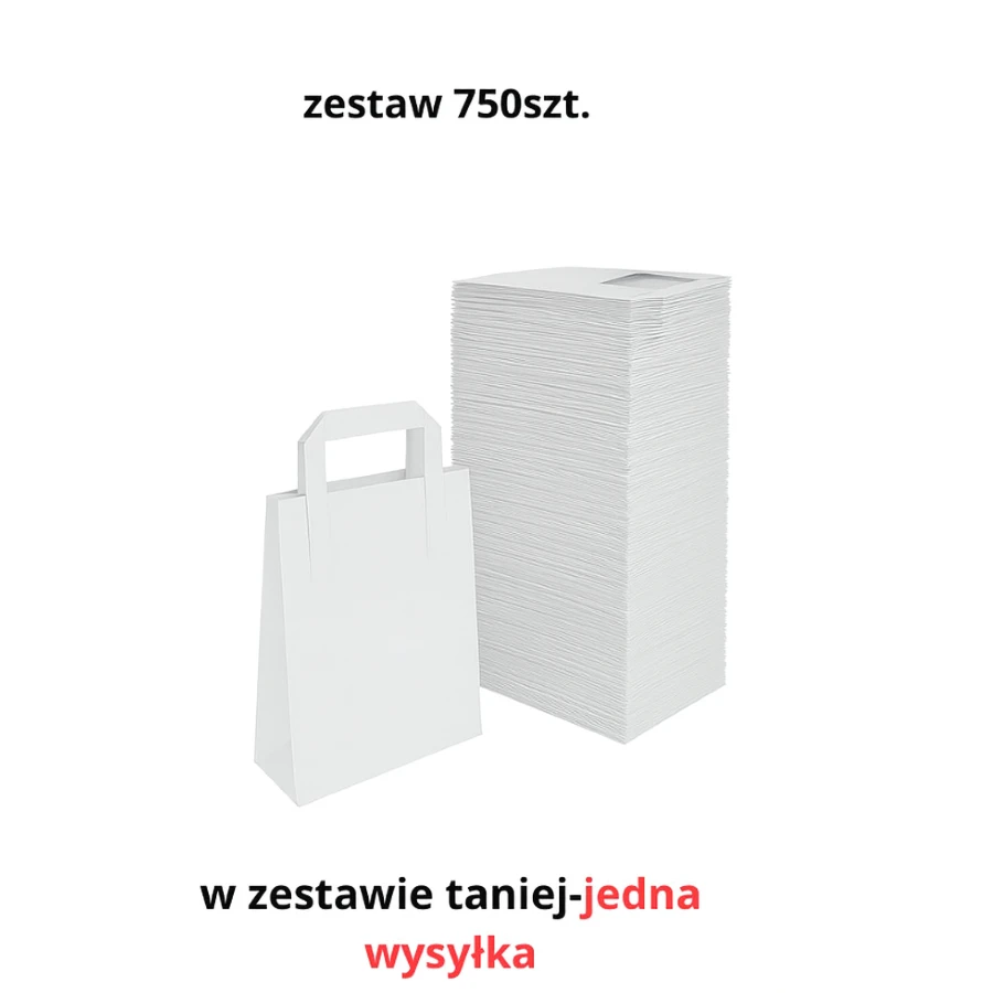 Niższa cena i jedna przesyłka – Zestaw 750 szt. – Torba papierowa biała z płaskim uchwytem 18 × 9 × 23 cm